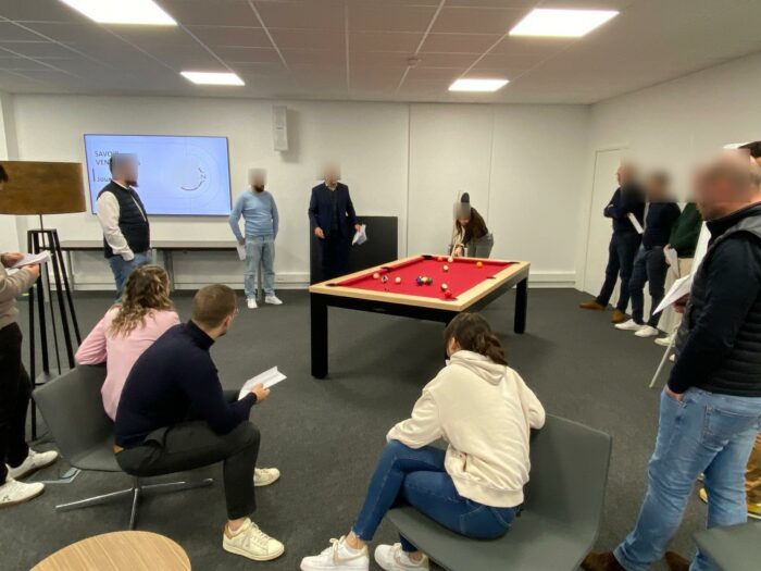 Le billard se distingue des approches traditionnelles telles que les séminaires ou les ateliers, en proposant une expérience immersive qui favorise la coopération et l’engagement de chaque participant.