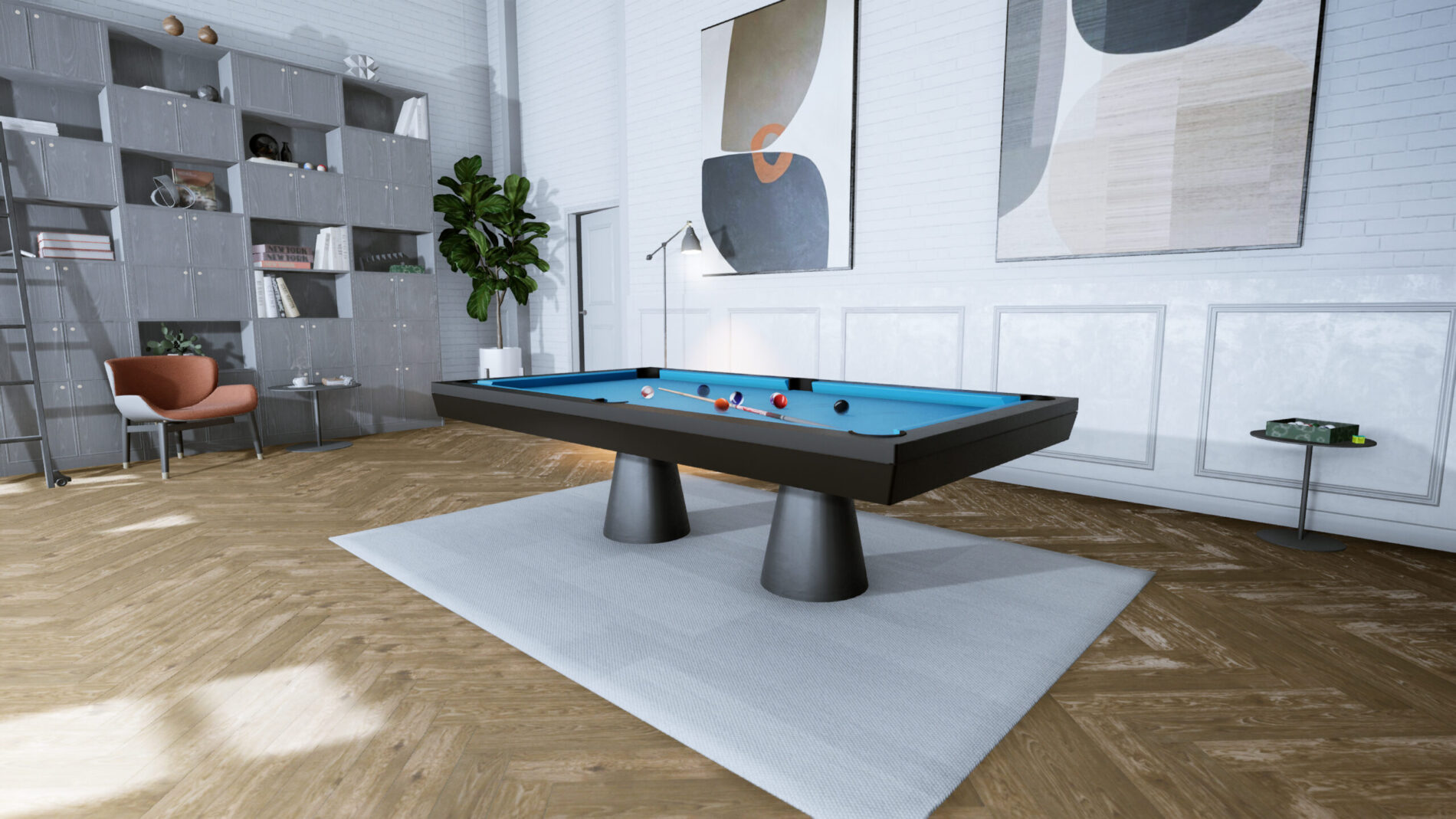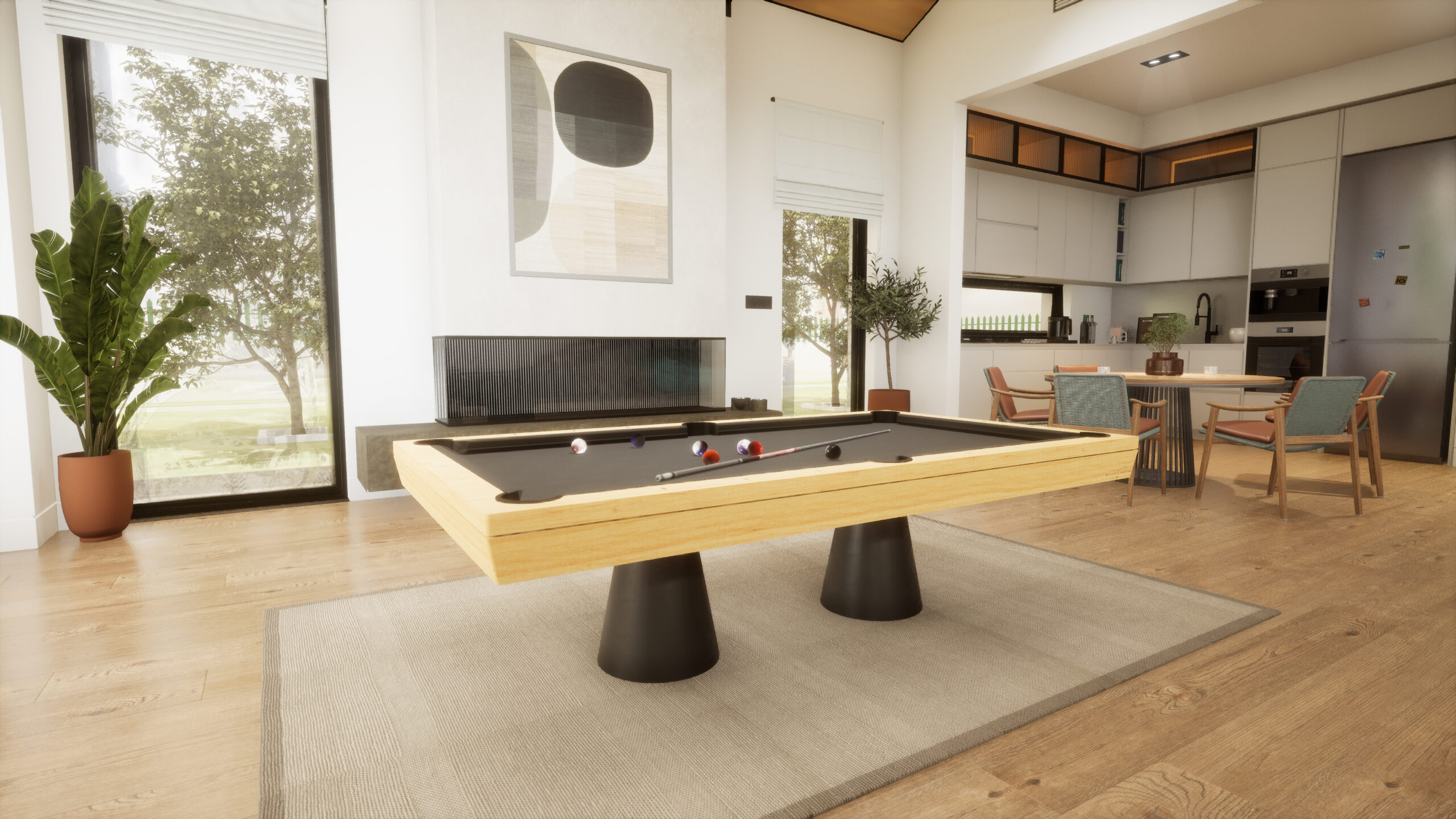 El diseño de Milo se ha guiado por una búsqueda constante de la sencillez. Ningún elemento es superfluo. Las líneas son tensas, los ángulos suavizados, las proporciones perfectamente estudiadas para integrar el billar como un auténtico mueble de diseño, en un salón contemporáneo, una biblioteca, un espacio profesional o una residencia con carácter.