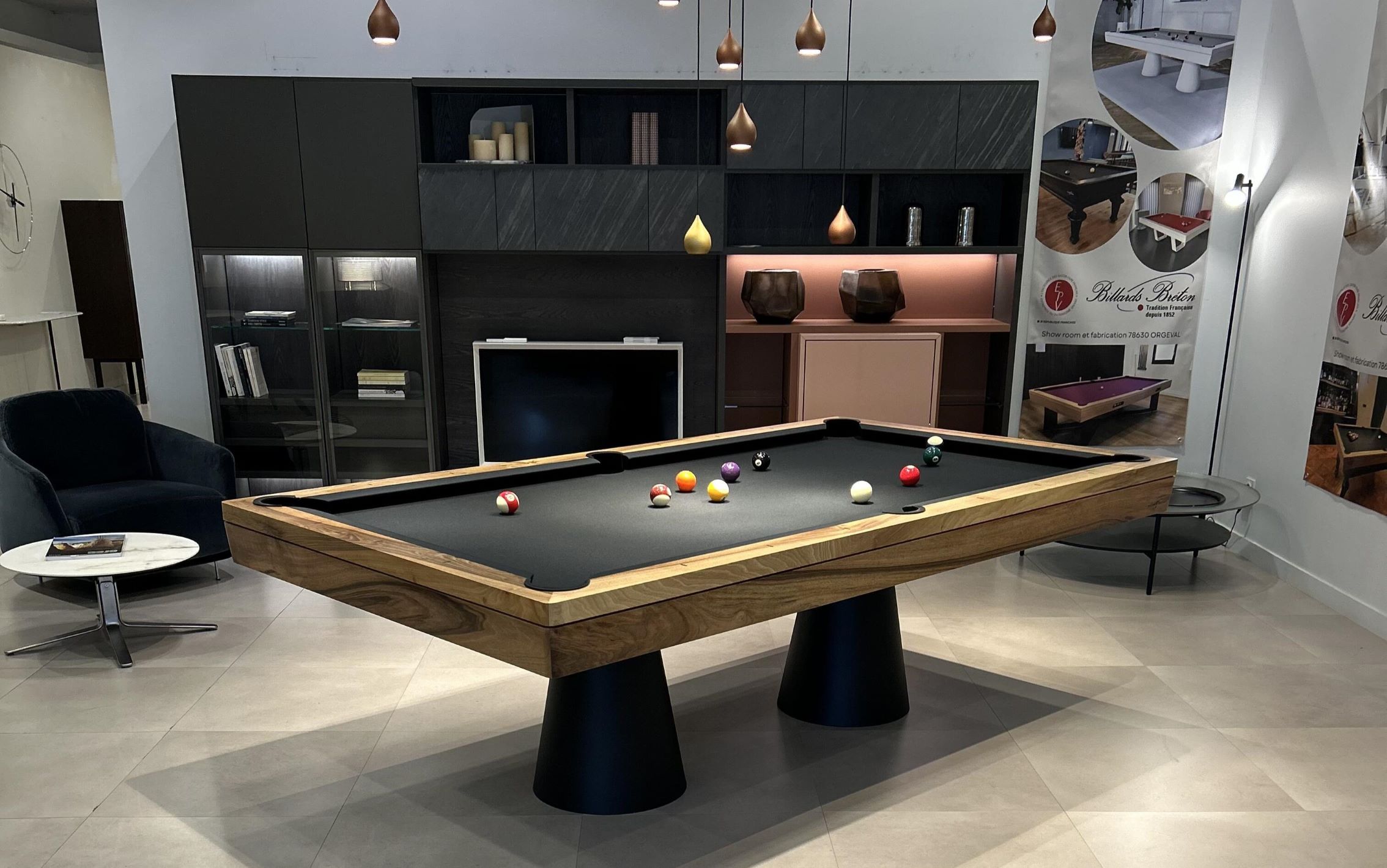 ¿Está pensando en comprar un billar Bréton? Venga a visitar nuestra sala de exposición de más de 300 m2 en Orgeval, en la región de Île-de-France.