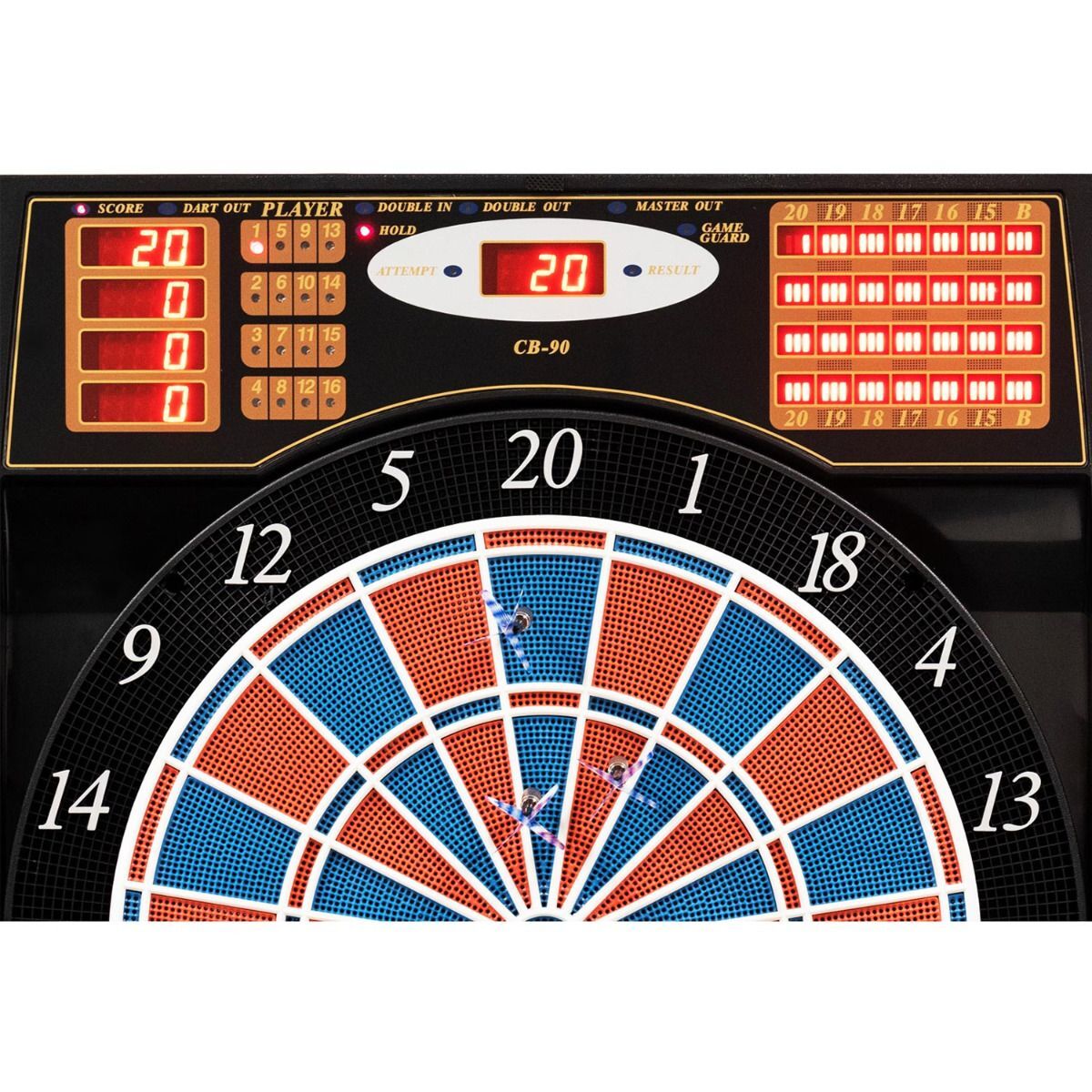 Un jeu de fléchettes électronique très complet, intégré dans un meuble
