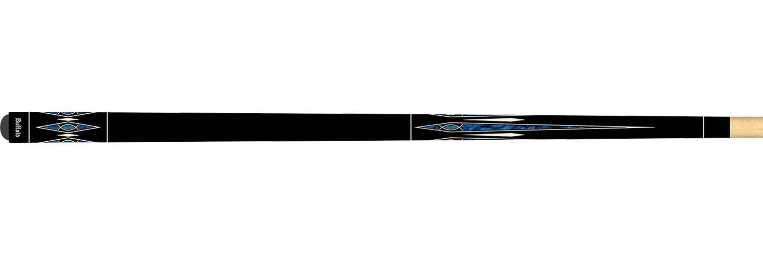 La queue de billard français Buffalo Tokara est en Erable et de couleur bleue, blanche et noire avec une décoration en losanges. Fabriquée avec des matériaux de qualité.